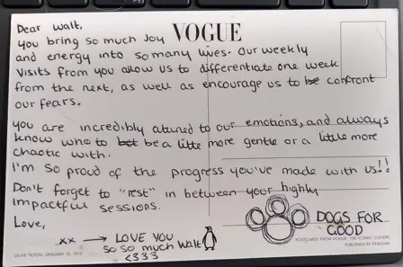 In March 2023, a young person's mental health service made contact with us at Dogs for Good. The service, an 18-bed in-patient unit forming part of Oxford Health NHS Foundation Trust, is a Tier 4 service - meaning it supports the needs of young people with the most complex, severe or persistent mental health problems, including mood disorders, eating disorders and psychosis. Many have also experienced attachment difficulties and trauma, and some have a diagnosis of autism.
